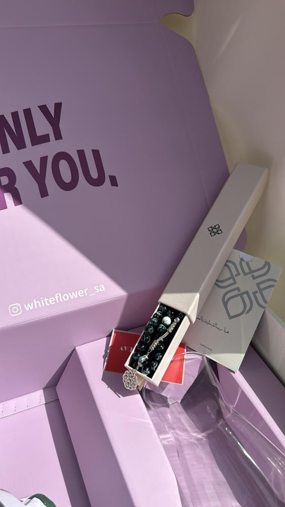 بوكس ورد مع البراوني وسبحة بكلايت رجالية