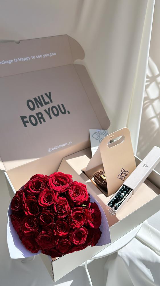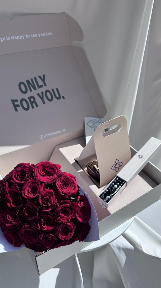 بوكس ورد مع البراوني وسبحة بكلايت رجالية